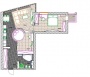 В ходе проектирования появляется огромная гостиная зона - студио со стеклянной стеной от потолка до пола, за счет полукруглой стены спальни все пространство воспринимается как единое целое, которое не делимо на отдельные помещения, находясь в таком пространстве ты не ощущаешь стен - есть только зоны отделенные визуально друг от друга мебелью или декором. Помещения объедены в единый ансамбль являются логическим продолжением друг друга. И две полноценные отдельные спальни с гардеробами, круглой кроватью и балконом. Что при той же номинальной площади увеличивает полезную площадь практически вдвое.