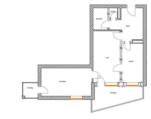 Двухкомнатная квартира на 14 этаже с проходной спальней и балконом-террасой на 12 м.кв с огромными витражными окнами в пол на всю длину балкона. И все это находится за наружной стеной с обыкновенными окнами. Было принято решение исправить эту досадную с точки зрения дизайна ошибку.