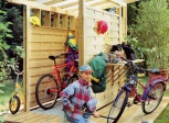 Гараж для велосипедаНа придомовой территории построили этот гараж для нескольких велосипедов. Красивое многофункциональное строение удалось возвести всего лишь за один день. Стоимость строительства, включая работы и материалы, – 2 500 гривен.