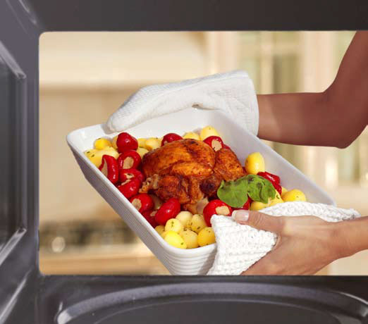 Иногда люди ошибочно считают, что микроволновка и духовой шкаф — это идентичные приборы и действуют на продукт одинаково. Однако это не совсем так. В духовках ТЭНы нагнетают температуру в камере, а в микроволновых печах колебание волн сверхвысокой частоты нагревает влагу в продуктах, от чего те проходят термическую обработку. В результате в духовых шкафах нагревательные элементы действуют теплом на поверхность продукта (образуется хрустящая корочка, но надо следить, чтобы блюдо пропеклось изнутри), а в микроволновых печах продукт под действием волн сам себя разогревает изнутри (нет корочки, но блюдо готовится равномерно).