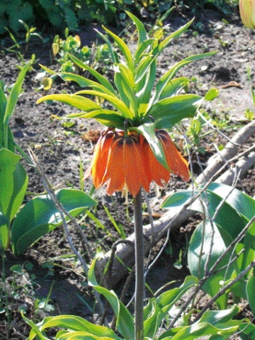 Высота – до 1 м. Цветет в мае расположенными на верхушке стебля, ширококолокольчатыми, кирпично-оранжевыми, поникающими цветками. Предпочитает солнечные места или полутень, неприхотлив к влажности и плодородию почвы. Для одиночных и групповых посадок.