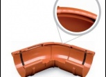 Угол желоба внутренний, предназначен для соединения водосточных желобов 125 мм под внутренним углом 135 градусов. Резиновые уплотнители обеспечивают хорошую герметичность и высокую плотность соединения.